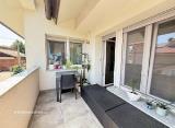 2,5 sobno 74 m2 (hodnik, wc, kopalnica wc, kuhinja z dnevno, kabinet, spalnica, zastekljen balkon), opremljeno, klima, shramba-klet 6,3 m2, garaža-klet 20,7 m2. .